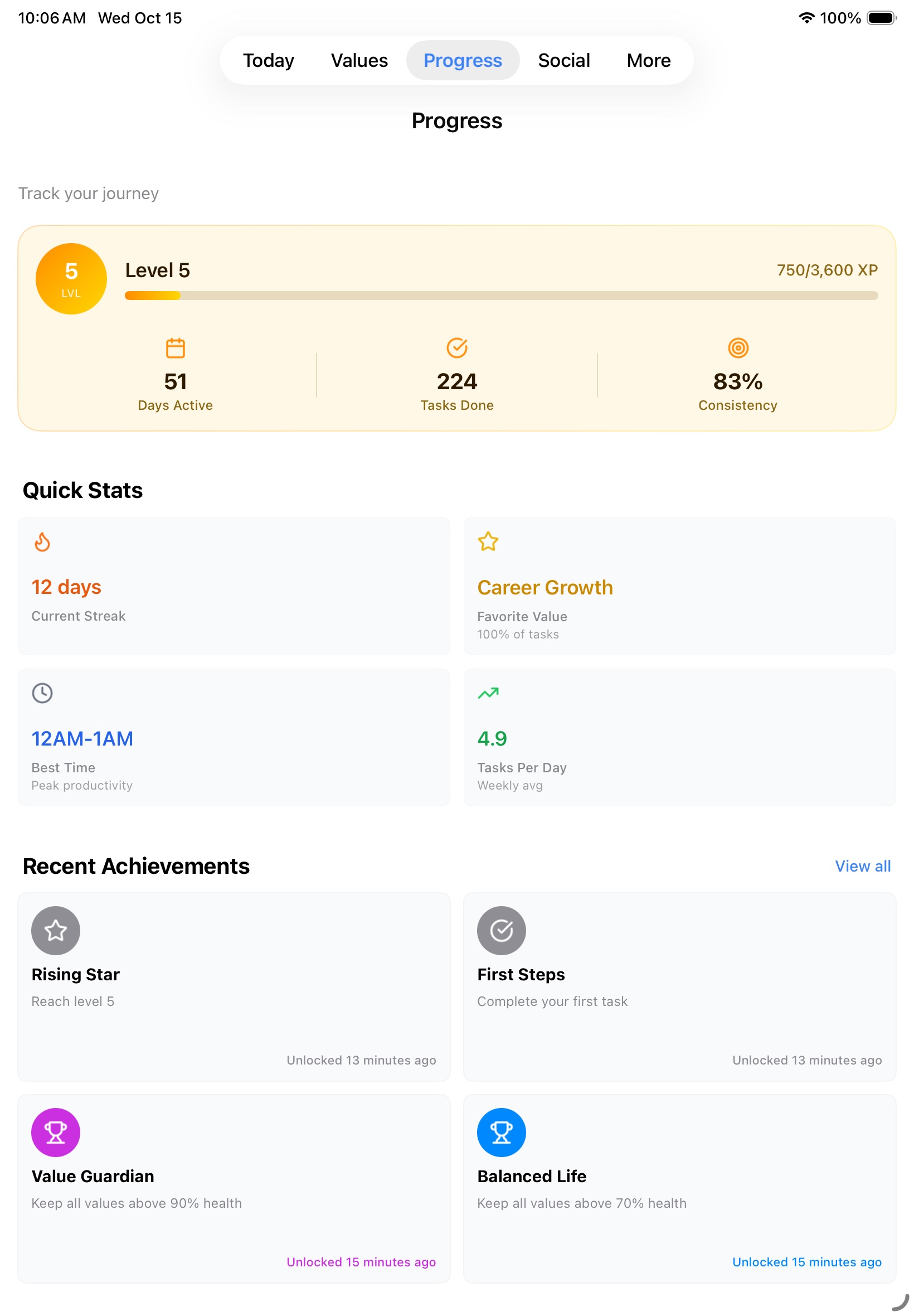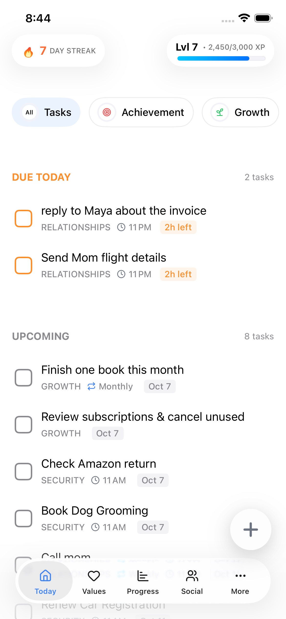 A calm, gamified system that helps you act on what matters—without the noise, guilt, or clutter.